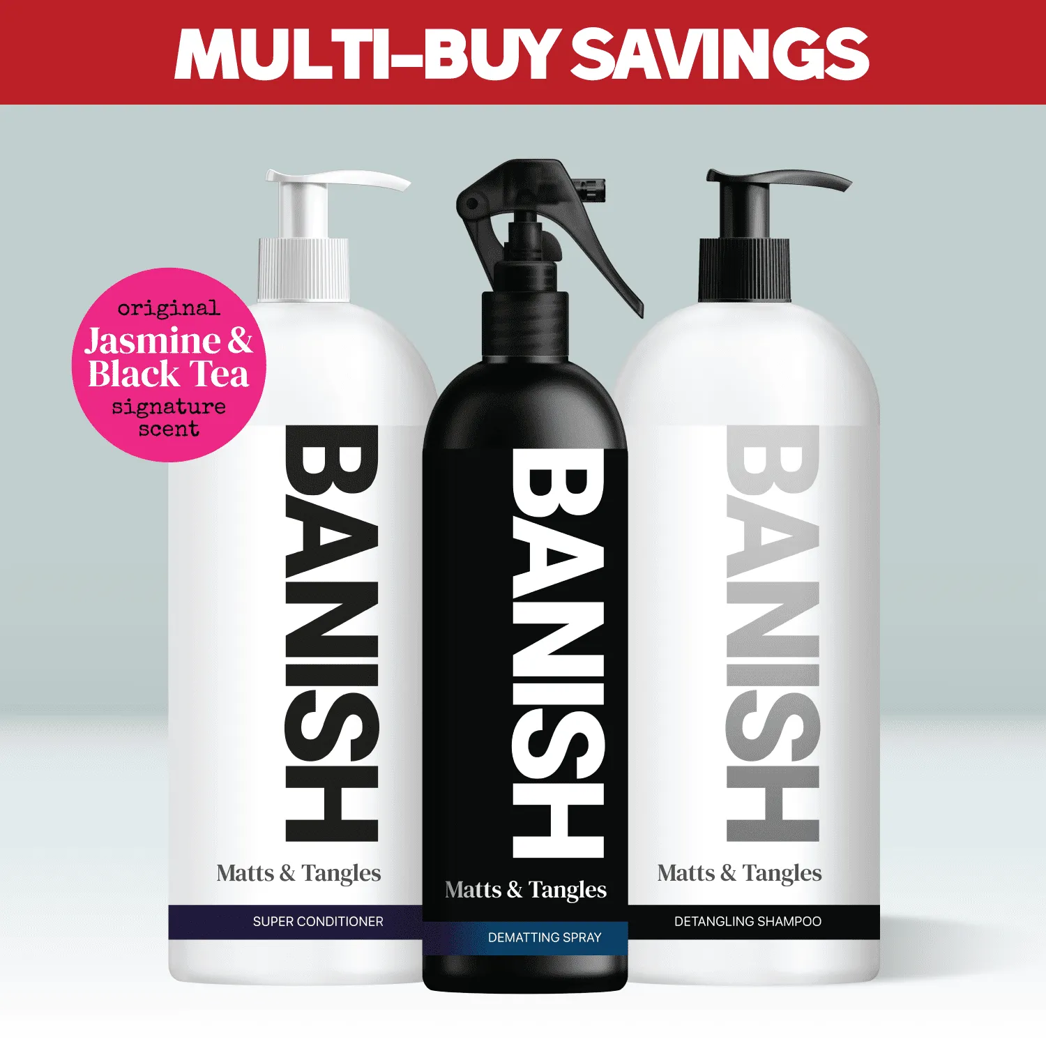 Are matted coats and shave-offs leaving you frustrated? Transform your grooming experience with BANISH—your ultimate defense against knots and tangles. This award-winning range offers a complete solution with its detangling shampoo, super conditioner, and dematting spray, delivering immediate results and long-lasting protection. Whether you’re a salon professional or a pet owner, BANISH helps preserve coat integrity, improve manageability, and maintain natural texture with ease.