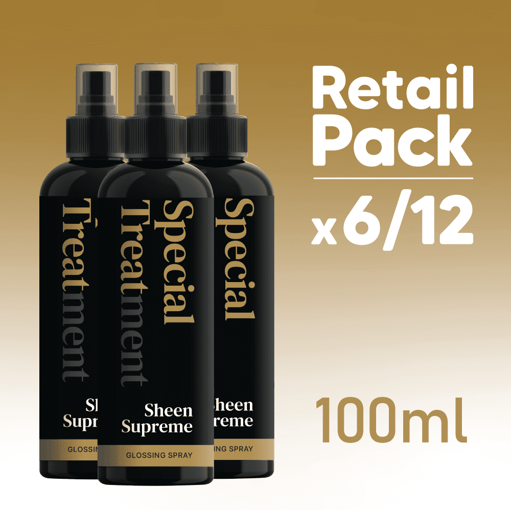 Spray evenly over the coat and disperse with a comb or brush to impart a glossy sheen. Repeat as required. Contains alcohol to speed up drying without saturating the coat.
