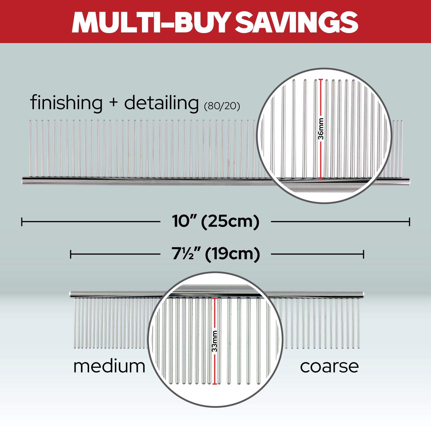 • Medium/Fine Comb : Perfect for finishing and refining coats that are free of major tangles.