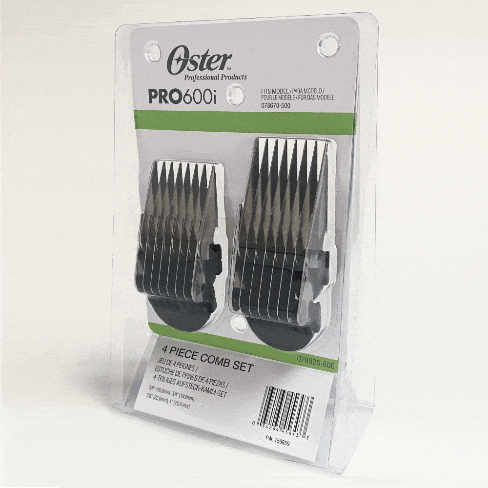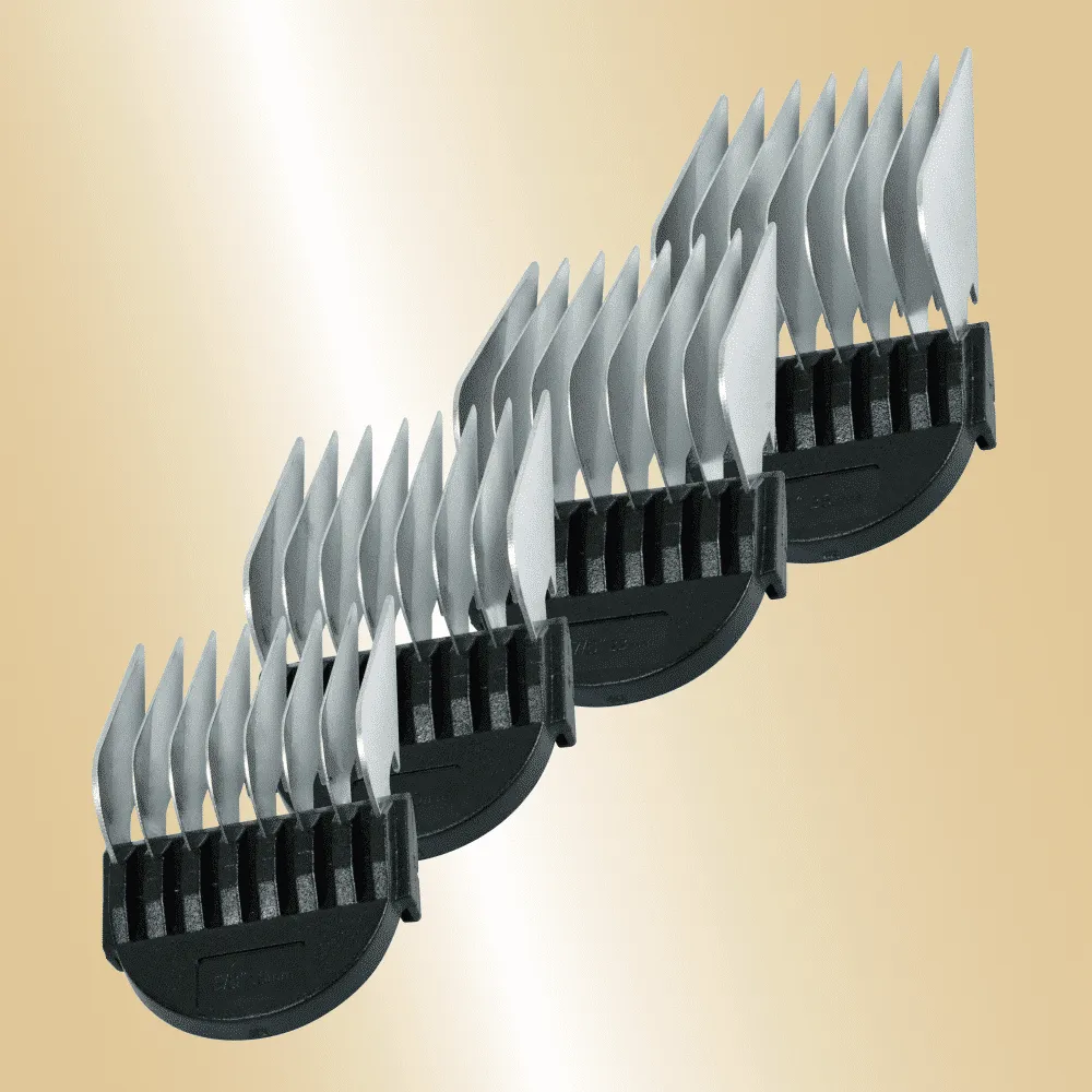 These stainless steel comb attachments are compatible with the PRO 600i or C200. This 4 piece large comb attachment set ranges from 16mm to 25mm.