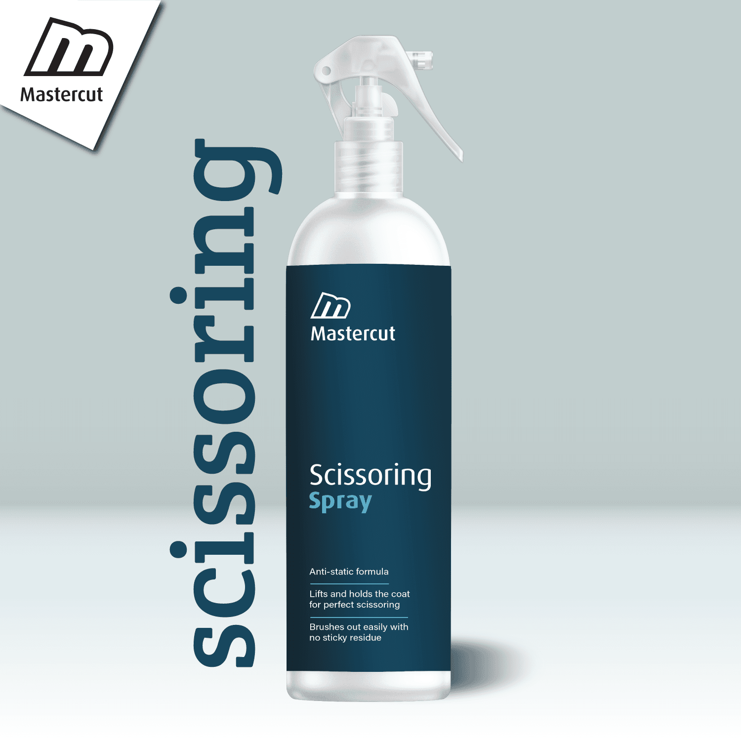 is a professional styling aid, specially developed to eliminate static and control the hair for greater cutting accuracy. Formulated with carefully selected ingredients to nurture and protect the coat, Mastercut scissoring spray contains no lacquer or varnish and brushes out easily leaving no sticky residue.