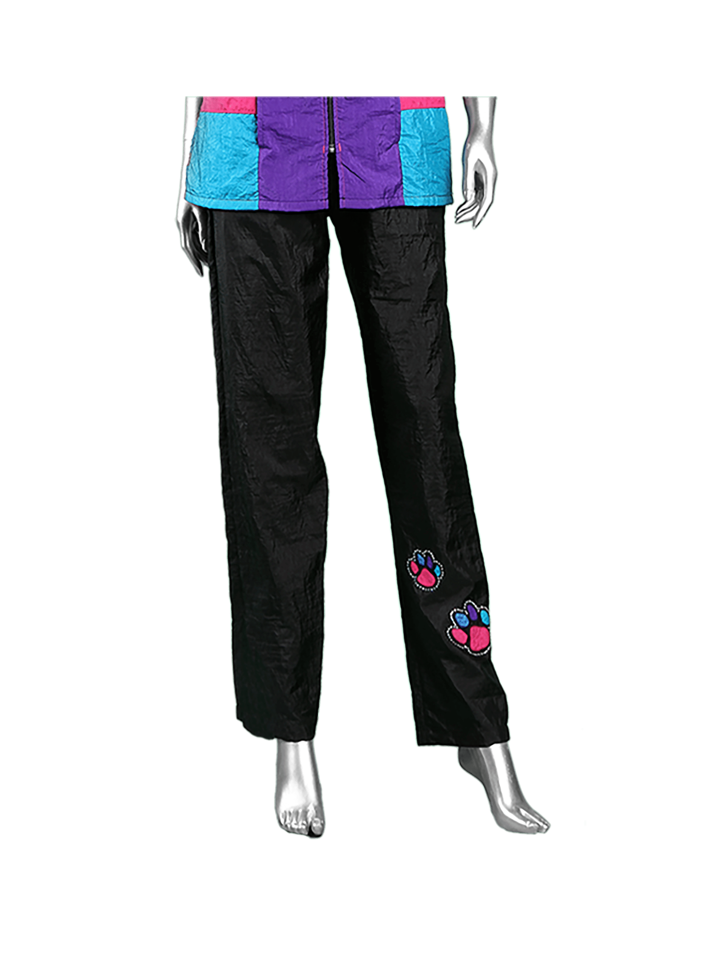 The Stylist Wear trousers have a classic high waist with a straight leg and a comfy 1″ elastic waist band. At the bottom of one leg there are 2 multi coloured paws edged in rhinestones, brining a little bit of sparkle and pazzaz to your working day.