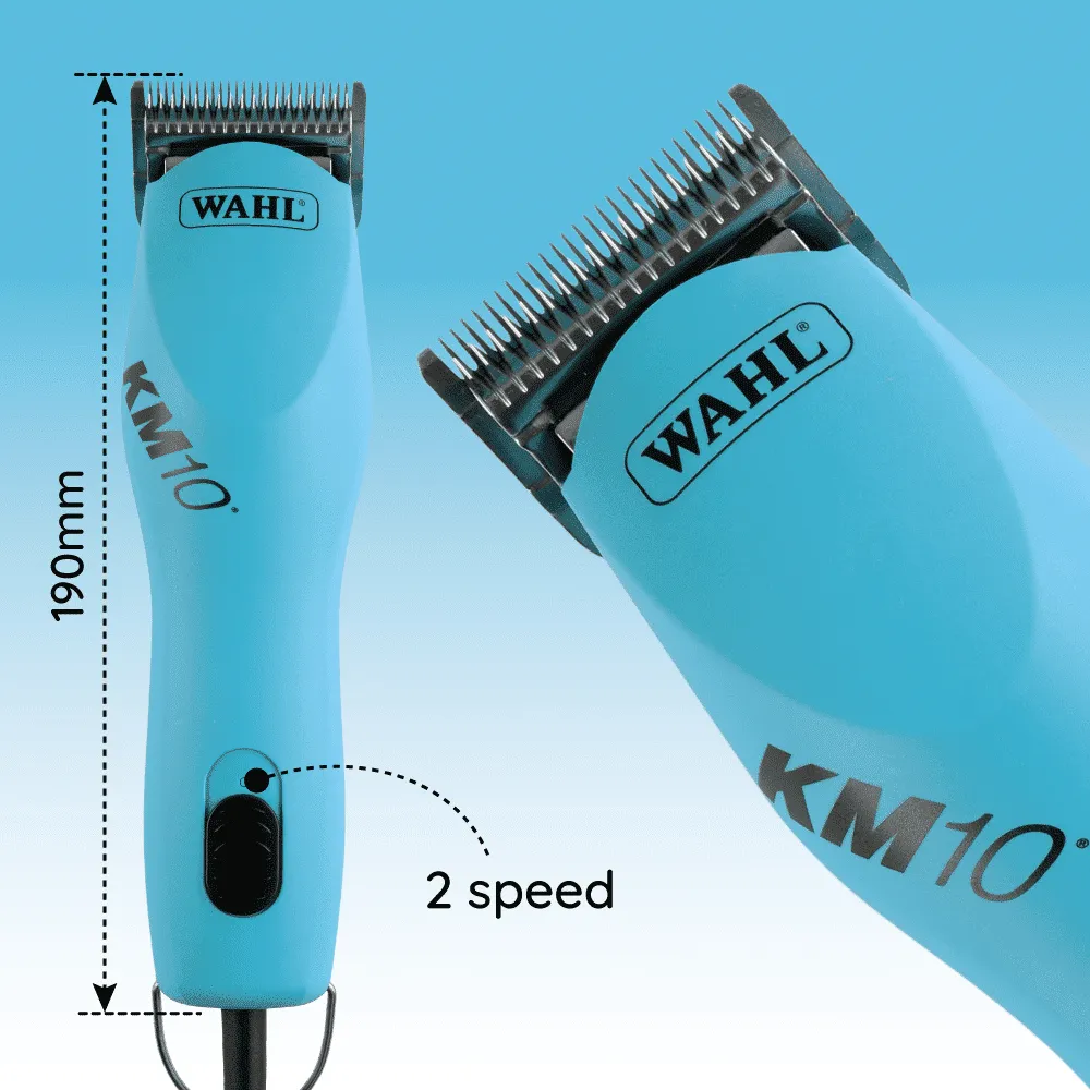 is a professional corded clipper, designed for all-round animal grooming and coat styling. The high tech, brush-less DC motor offers 2 speed settings for fast body clipping and slow precision trimming tasks. The Wahl KM10 housing has been designed by experts in ergonomics to be the most comfortable and lightweight Wahl clipper yet – adapting to fit the user’s hand with a non-slip coating to prevent fatigue and offer better handling. The Wahl KM10 works with all ‘Competition Series’ blades and can also be used with attachments combs (not included) for maximum versatility.